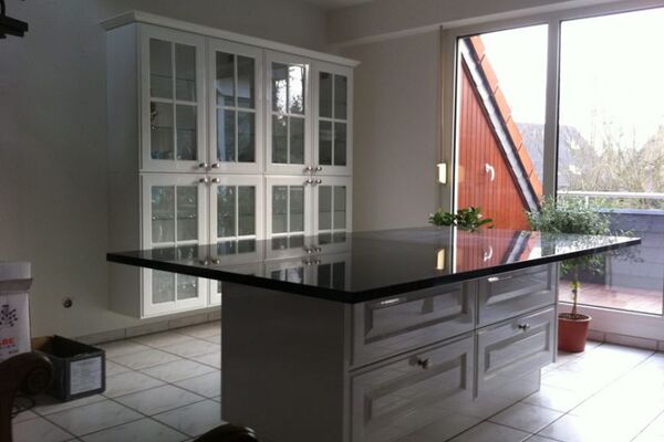 Hier finden Sie eine Auswahl an individuell angepassten Küchen mit Granit- und Quartzsteinoberflächen.